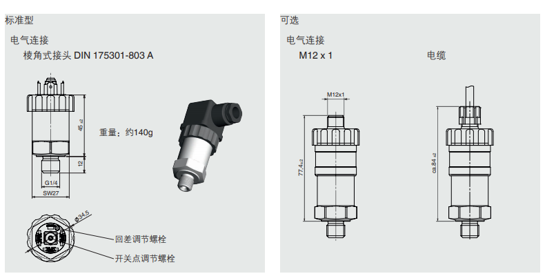 PSM02型旋入式压力开关具有膜片式或活塞式两种版本可选,可以根据压力的下降或上升对电路进行通断控制。该型号压力开关配有两个调节螺丝,操作人员可以在现场便捷的设定所需要的切换值和迟滞(可选)。此外,威卡还可以根据客户要求,提供开关点的出厂设置。PSM02型机械压力开关适合压力介质为压缩空气、中性和自润滑液体以及中性气体,且需要准确设置迟滞的场合。