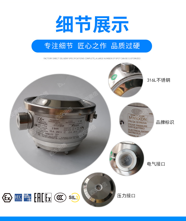 这种高质量膜片式压力开关专为有高*要求的应用而研发。该型号膜片式压力开关不仅品质*而且符合* 产品制造标准,可实现可靠监控。在生产中,开关在每个步骤都经由质量管理软件跟踪记录,而且在成品后经过了百分bai的测试。
