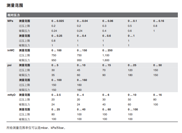 ■ 测量范围≤ 0.025 MPa (3.6 psi): ≤±0.4 %FS/10 K
