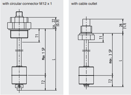 触点的状态变化始终是指液体的上升液位: 常开(O)、常闭(S)或转换型(U)。