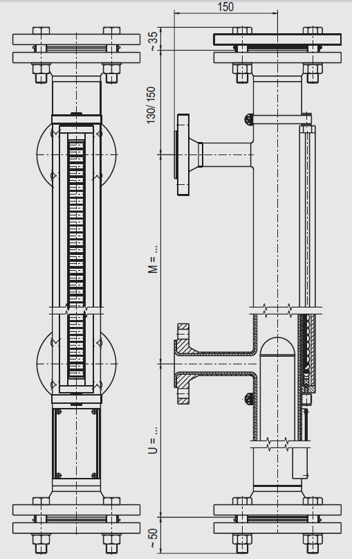 旁路液位指示器型号BNA由旁路 室,其中,作为一个连通管,连接 横向于通过至少2工艺连接的容器 (法兰,螺纹或焊接)。通过这种类型的 结构,在旁路腔室对应的水平 到容器中的水平。与浮子内置* 磁系统,其被安装在旁路内 室中,发送的液面,无接触,向 磁性显示安装到旁路的外侧 室。在此嵌合,以10毫米的间隔,双色 塑料辊或不锈钢皮瓣条形磁铁。