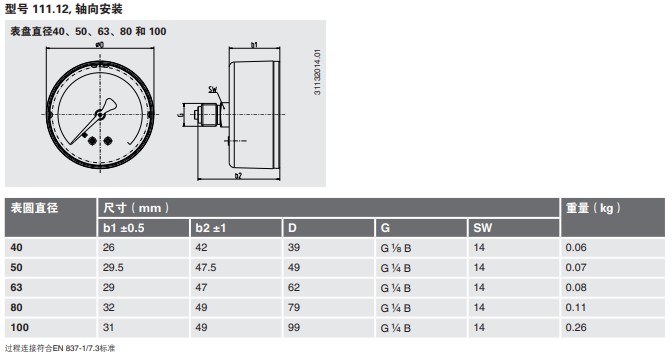 设计符合EN 837-1标准