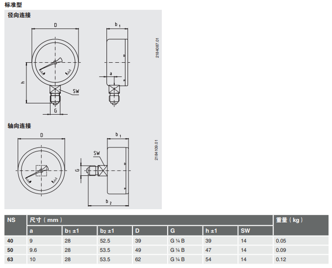 NS 4050: 0 … 0.1至0 … 60MPa
