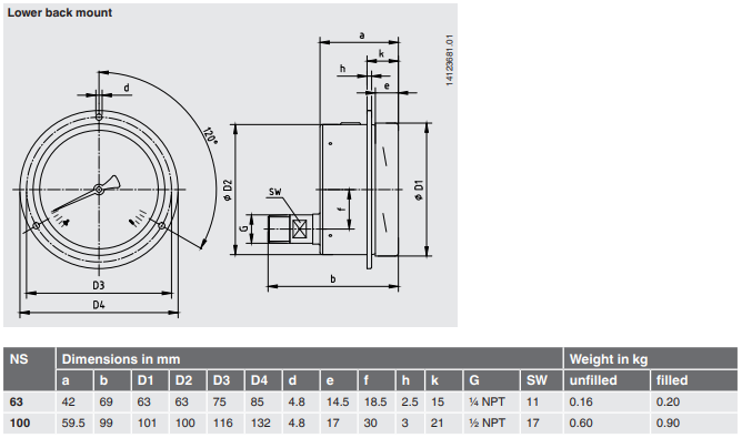 NS 63: 0 ... 1 to 0 ... 1,000 bar