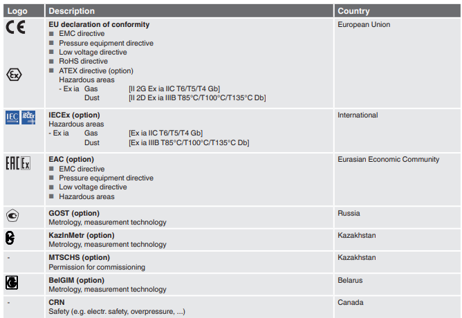 压力范围:0 ... 0.6 bar [0 ... 8.7 psi] to 0 ... 1600 bar [0 ... 23206 psi]