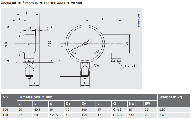 PGT23型压力表基于23x.30型安全模型而制造,是一款高质量的不锈钢压力表,标准尺寸为100或160mm。此外,该型号压力表的设计符合EN837-1标准。
