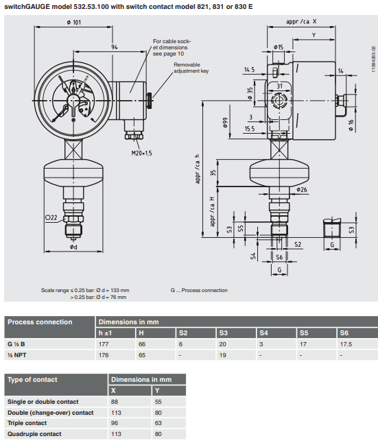 威卡532.53+8xx 带电接点开关绝压表 德国wika绝压表 wika绝压表