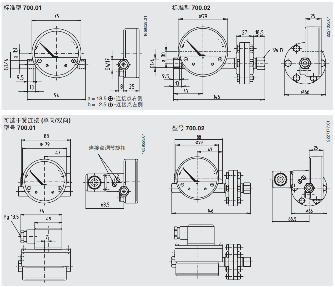 700.02型:0 ... 16 kPa至0 ... 0.25 MPa