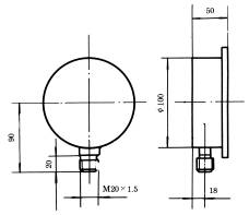 YE-100B,YE-150B 膜盒压力表适用于测量空气和对316L金属不起腐蚀作用的气体的微压和负压,一般用于空气管道,气体管道,燃烧装置,环境空气中有一定腐蚀场地以及其他类似设备上 结构