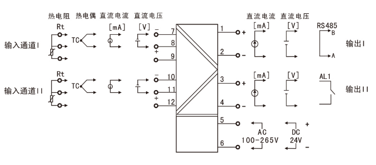 直流电压、电流,热电阻,热电偶,毫伏(订货时确定或 配置PCA手持式中文编程器自行编程) |