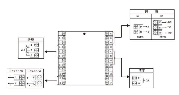 | 报警输出 | 继电器,容量:AC220V/2A,DC24V/2A |