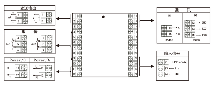 输出负载:电流型≤500Ω,电压型≥250KΩ