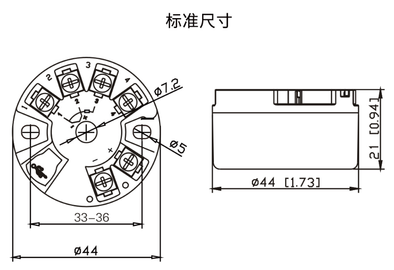 NHR-213智能温度变送器(圆卡),用于热电阻(RTD)、热电偶(TC)信号输入,二线制4~20mA模拟输出,安装于传感器内部(Form B)。