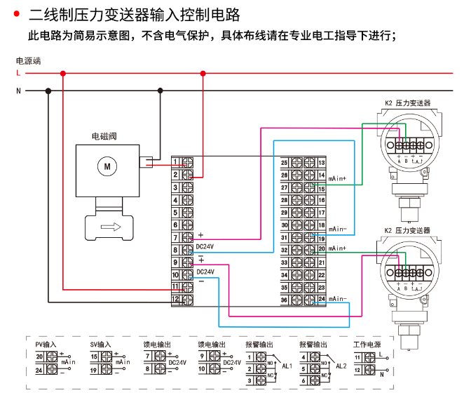 具备“上下限报警”、“延迟报警”、“断线报警”、“闪烁报警”等报警功能,带LED报警灯指示。